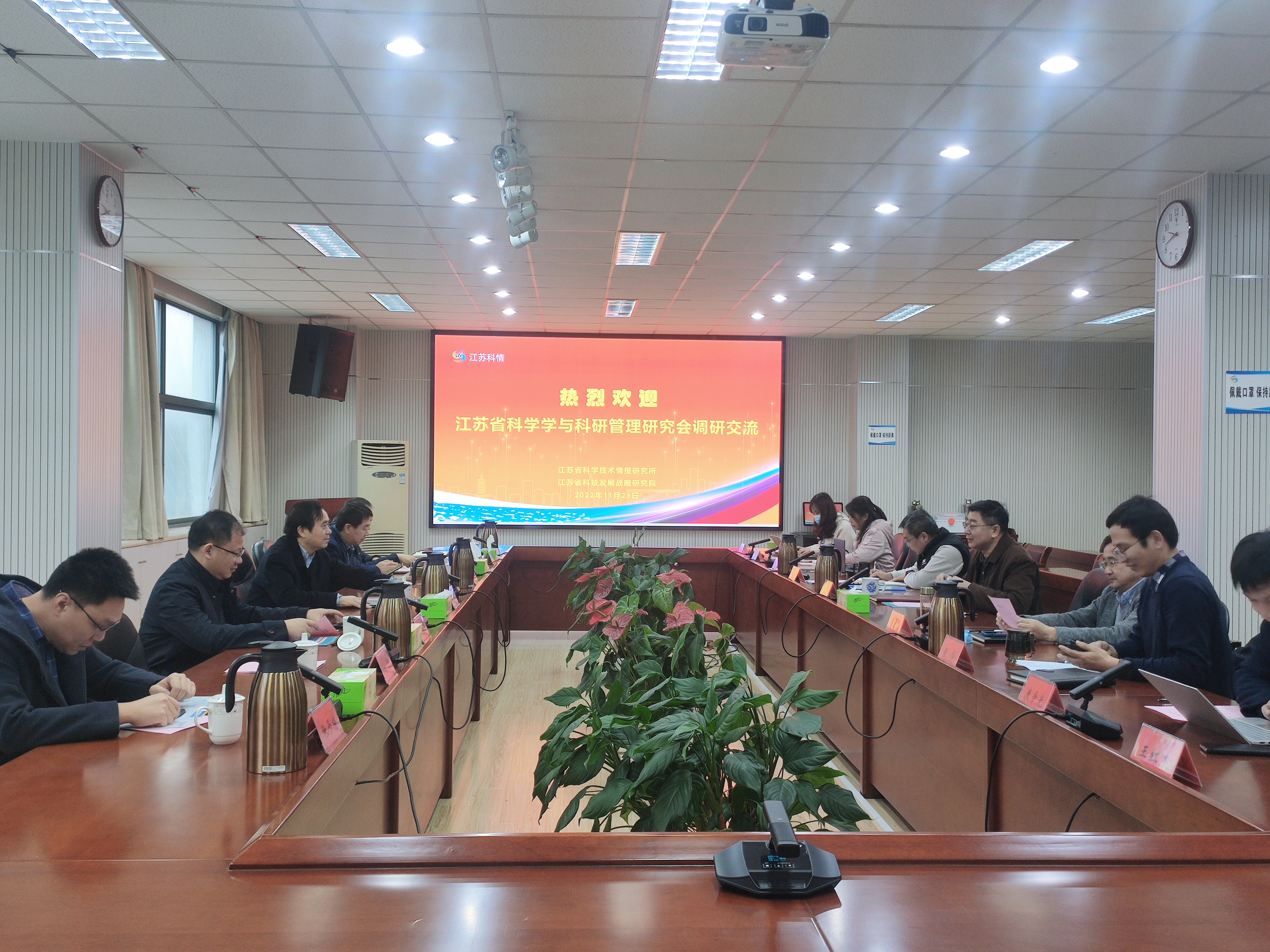11月29日,学会理事长李建清带领学会秘书长江胜强、医药卫生管理专业委员会主任委员钱东福、学会理事李歆、秘书处相关工作人员赴江苏省科学技术情报研究所(江苏省科学技术发展战略研究院)调研。江苏省科学技术情报研究所所长李敏、副所长周晓明、副所长马永浩、副院长张华及各部门负责人参加座谈交流。