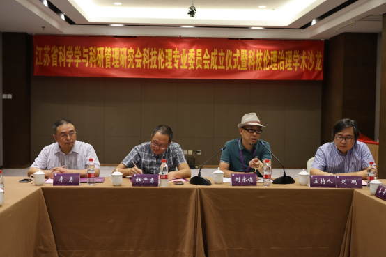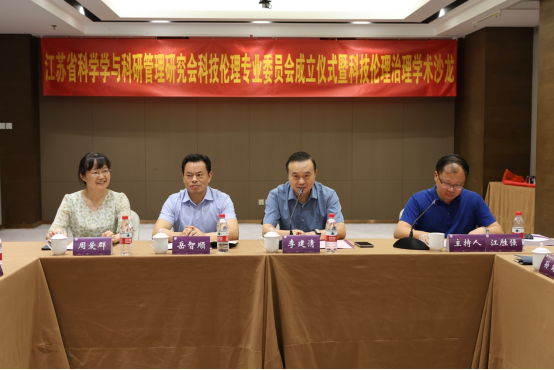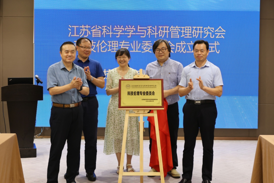 江苏省科学学与科研管理研究会科技伦理专业委员会挂靠南京大学哲学系,由南京大学哲学系副主任刘鹏担任主任委员,南京农业大学人文与社会发展学院教授姜萍、南京医科大学科研院副院长江胜强、南京医科大学医学人文系主任李勇、江苏省科技情报所科技经费监管服务中心主任孙峰、江苏省人民医院国际合作与交流处处长汪秀琴、南京大学人工智能学院和信息化中心副主任张建兵等6人任副主任委员,南京大学哲学系史晨任秘书长。岳智顺、李建清、周爱群、江胜强、刘鹏共同为科技伦理专业委员会揭牌。
